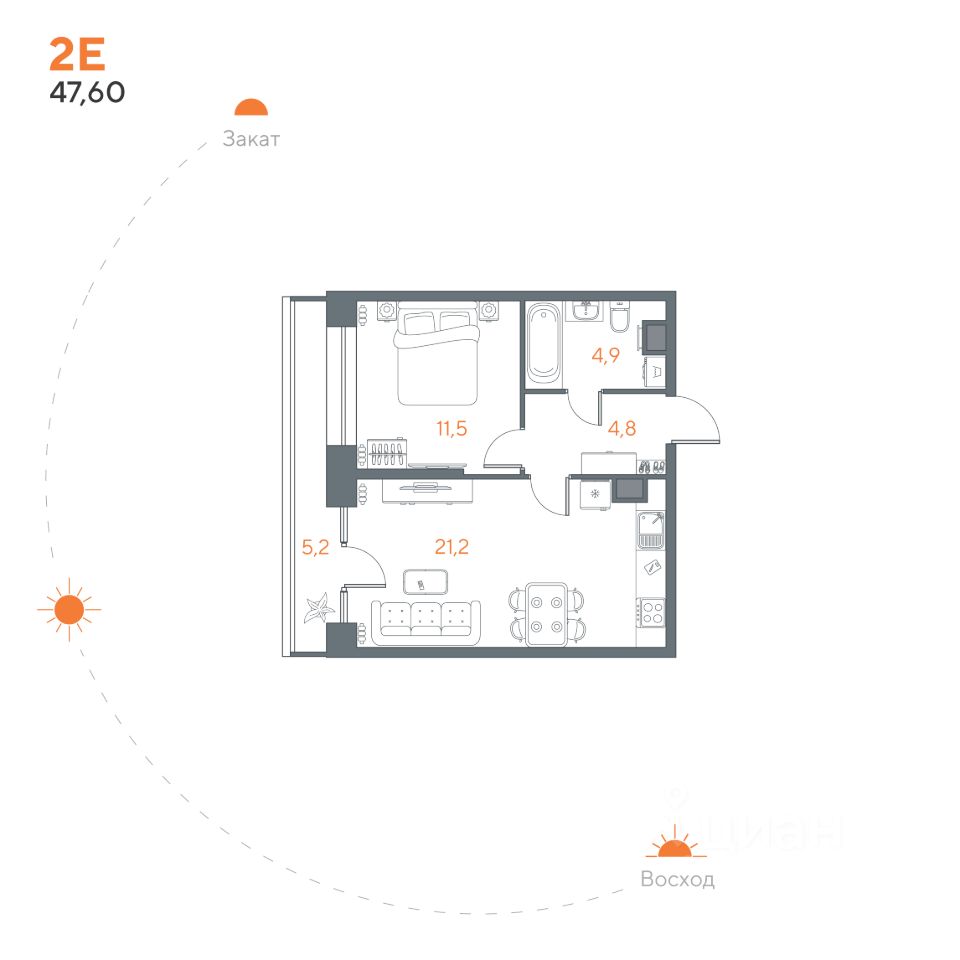 Общая площадь47,6 м²