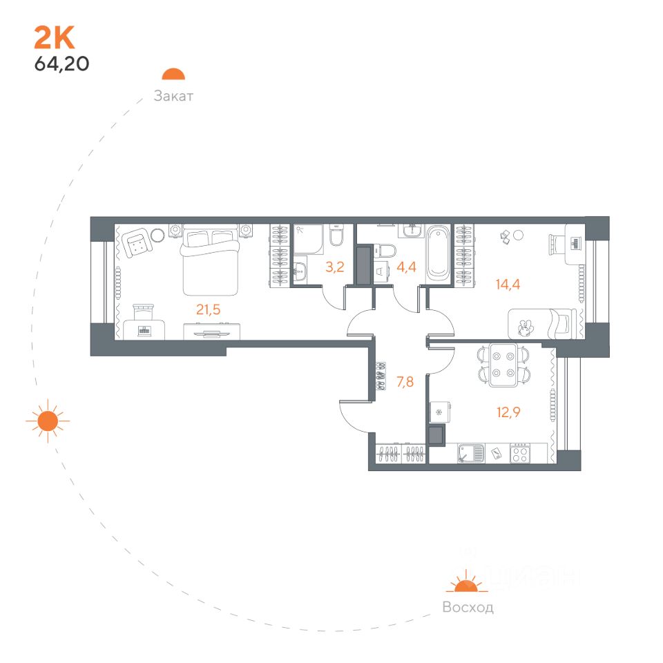 Общая площадь64,2 м²