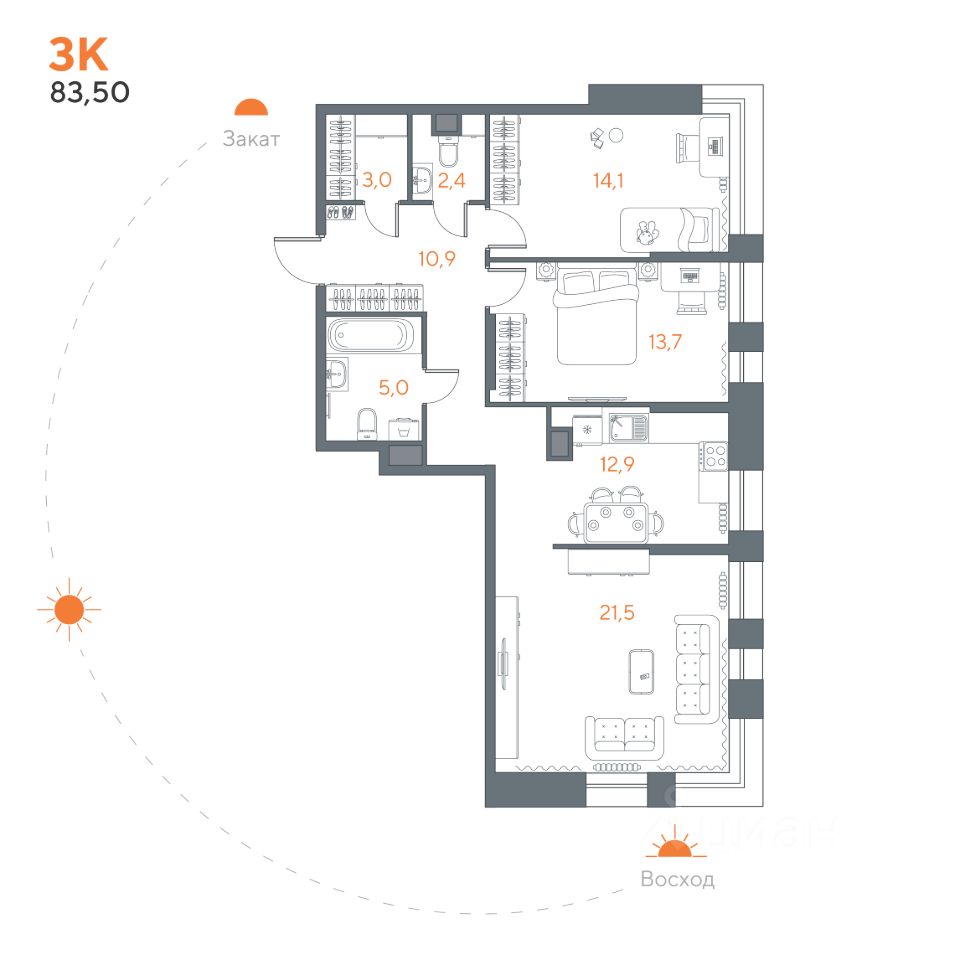 • Планировки с теплыми лоджиями, мастер-спальнями, террасами и патио.