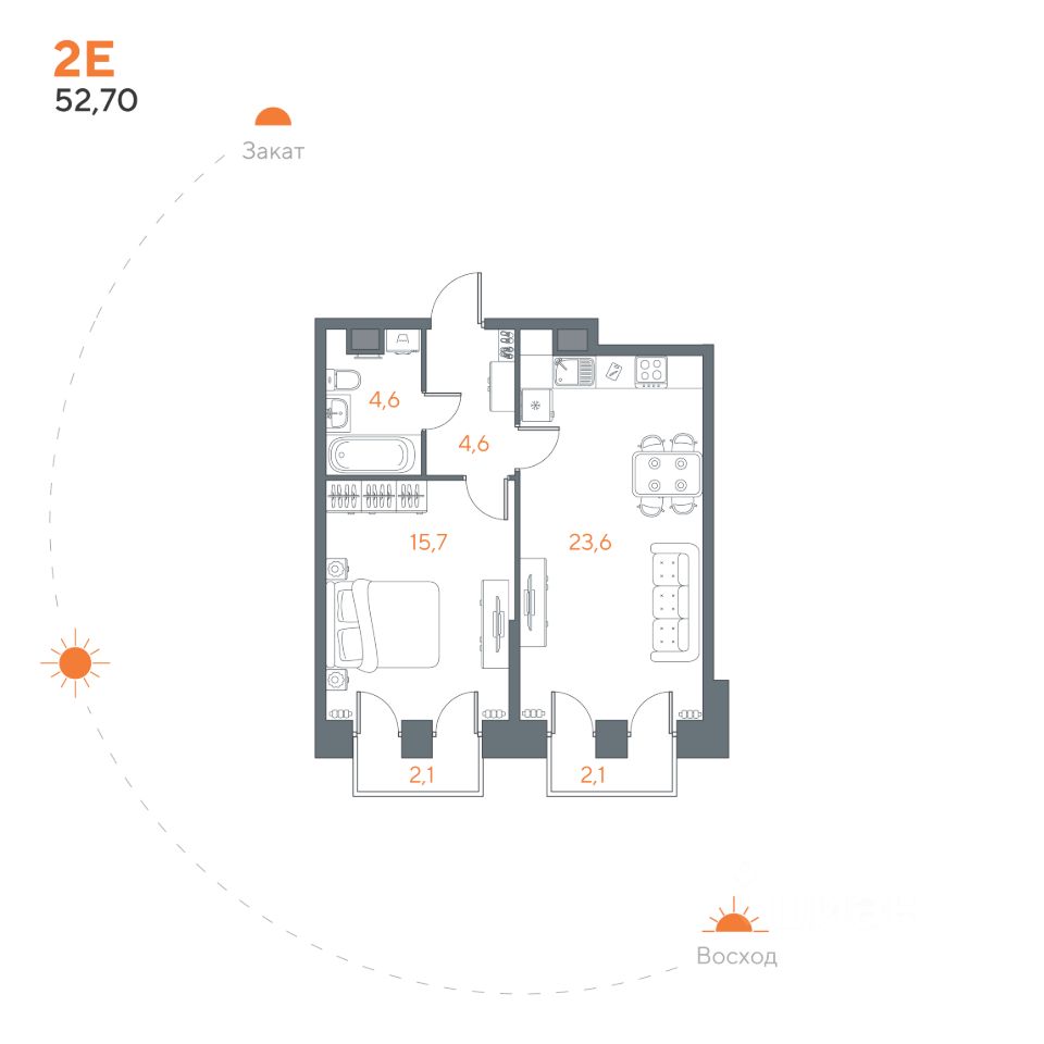 Общая площадь52,7 м²