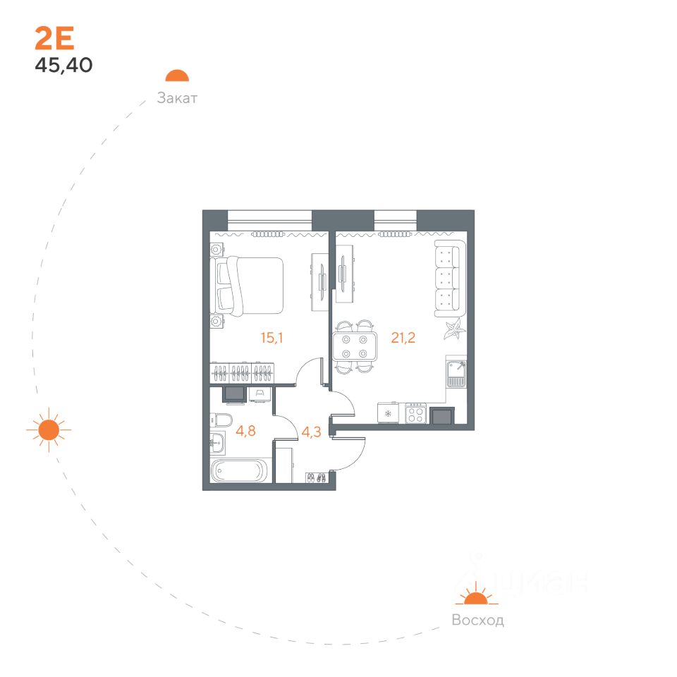 Общая площадь45,4 м²