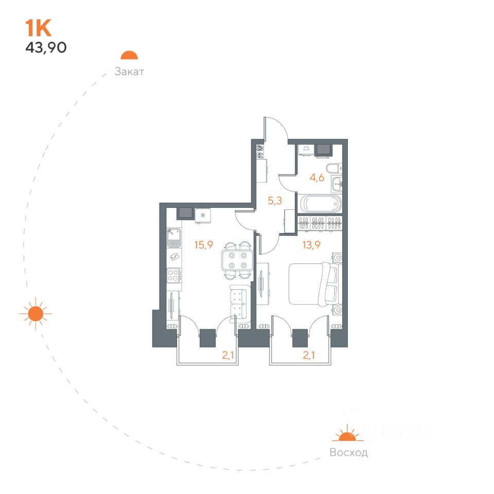 Общая площадь43,9 м²