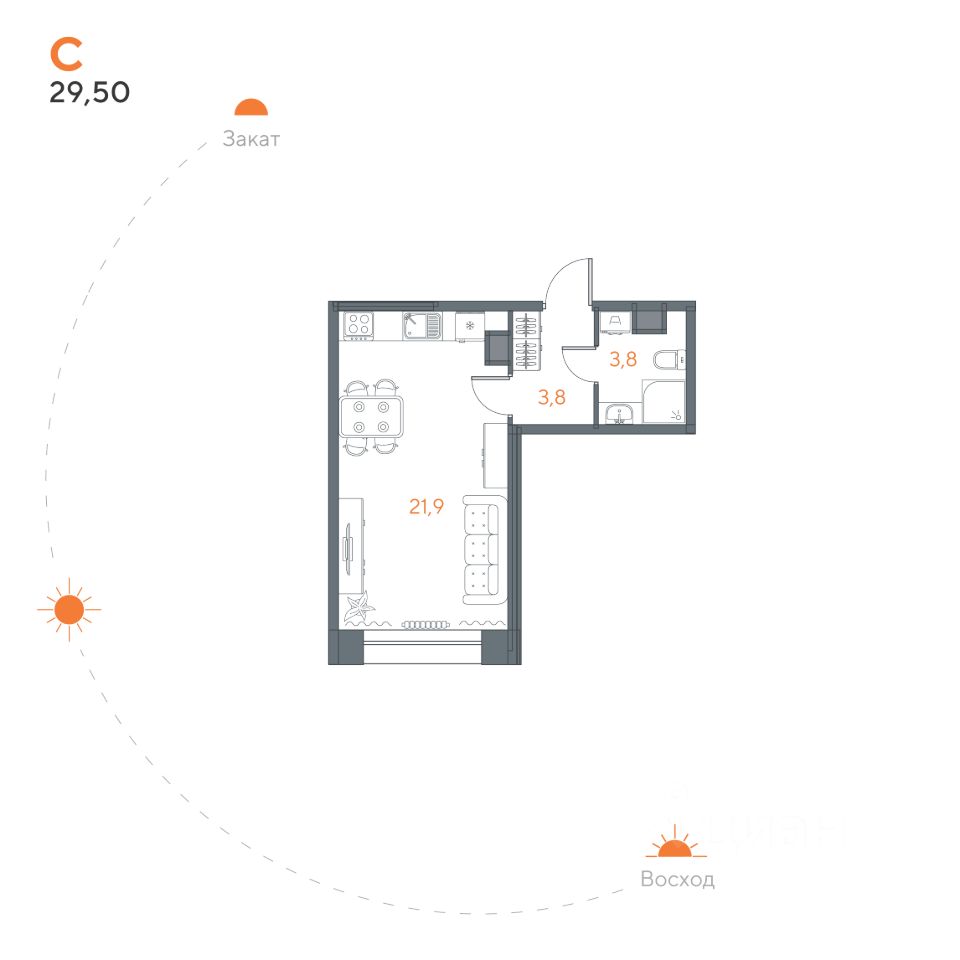 Общая площадь29,5 м²