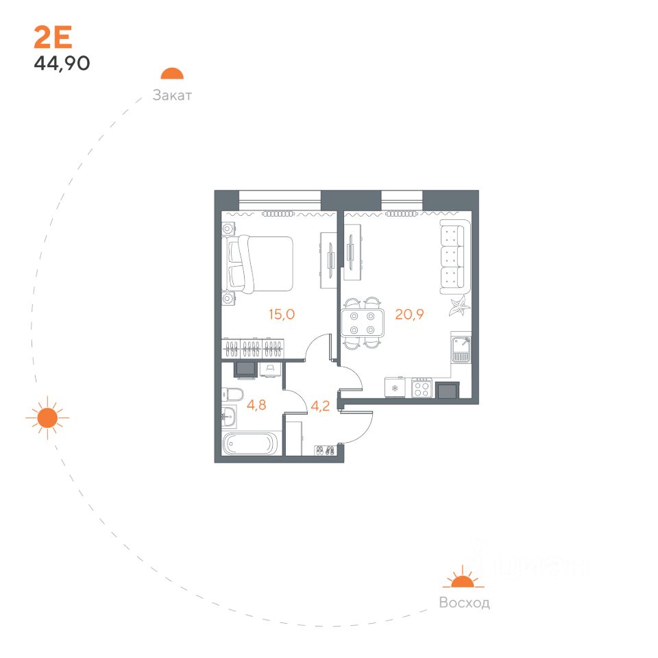 Общая площадь44,9 м²