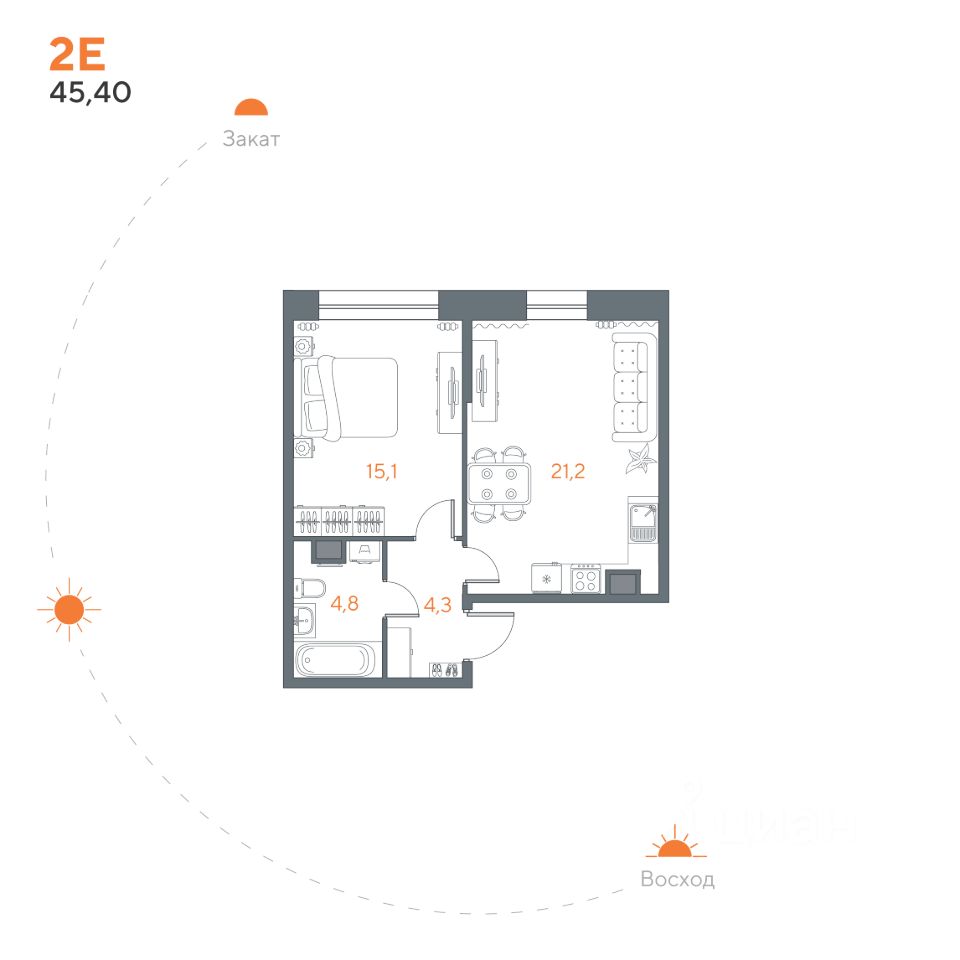 Общая площадь45,4 м²