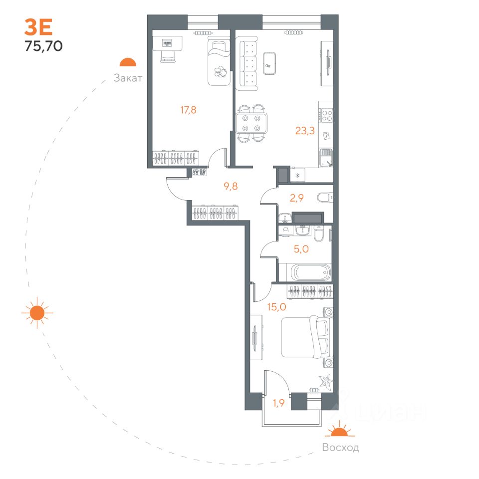 Общая площадь75,7 м²
