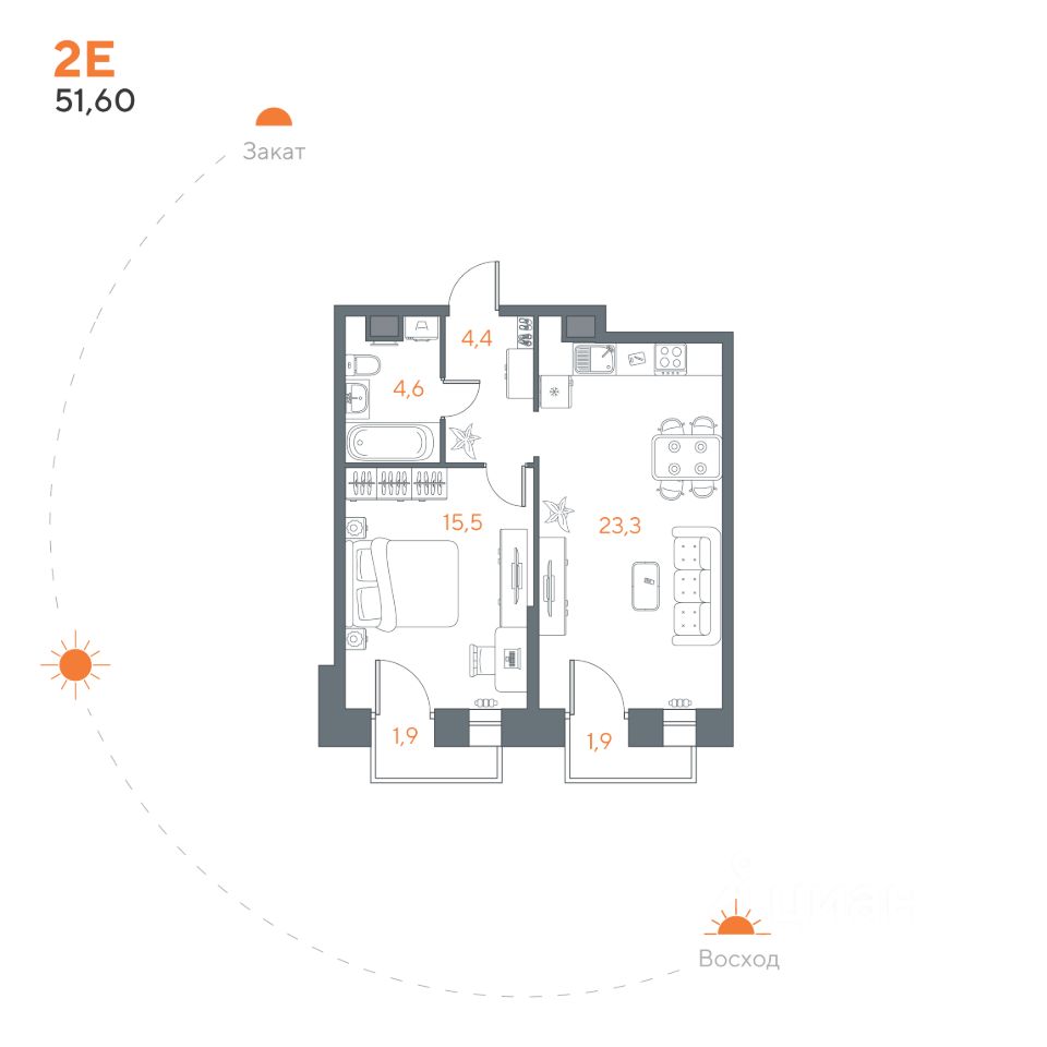 Общая площадь51,6 м²