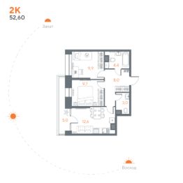 Продается 2-комн. квартира, 52,6 м²