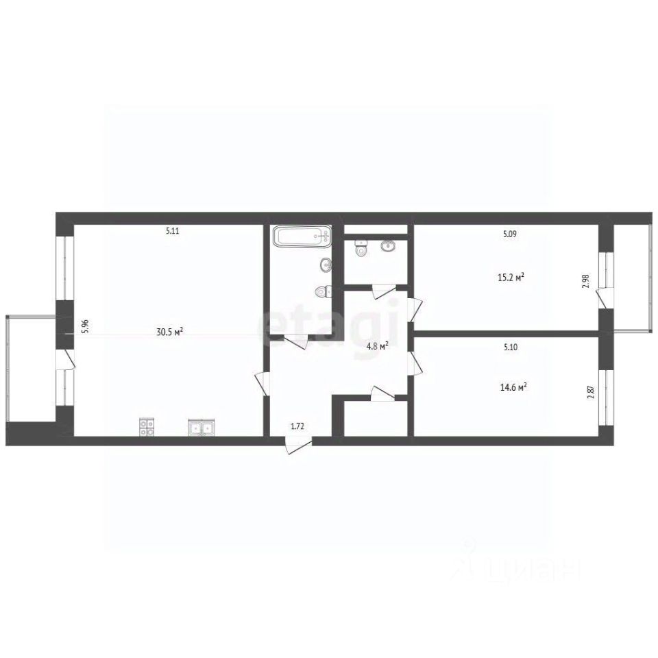 2. Две просторные лоджии: Дополнительные метры к полезной площади, утепленные и могут использоваться как жилое пространство.