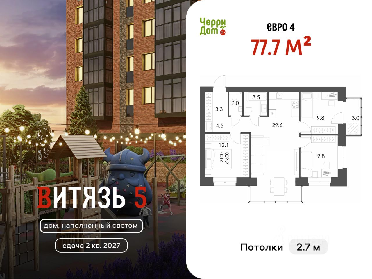 Продаётся квартира 20 в жилом комплексе "Витязь 5" от застройщика ЧерриДом.
