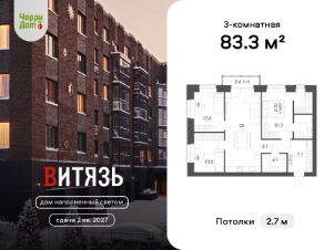Продаётся квартира 27 в жилом комплексе "Витязь 4" от застройщика ЧерриДом.