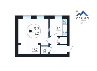 Общая площадь квартиры составляет 29,2 кв. м, из которых 18,2 кв. м — жилая площадь, 5 кв. м — кухня.
