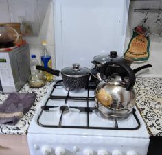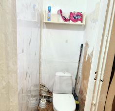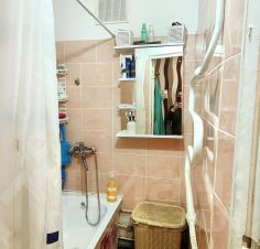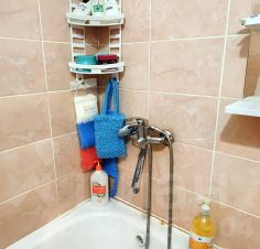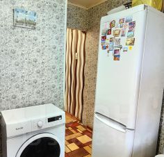 Кухня компактная, однако здесь вместилось все необходимое: газовая плита, холодильник и стиральная машина. Ванная комната разделенная, и это тоже удобно для семьи.