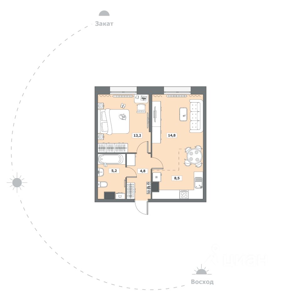 Жилая площадь13,2 м²