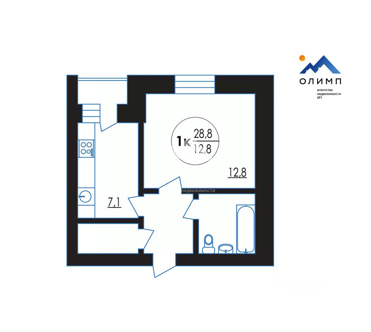 12,8 м²