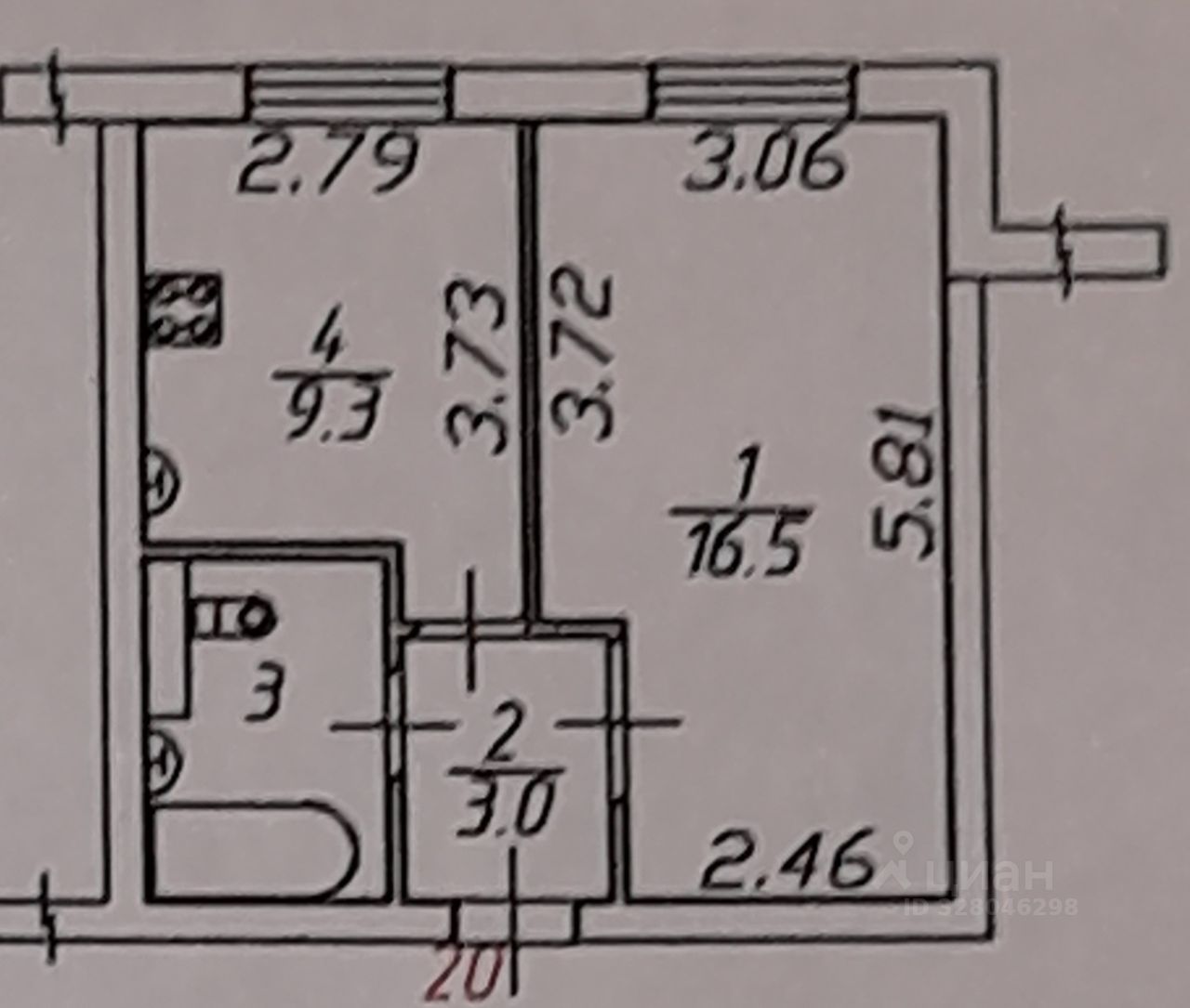 9,3 м²