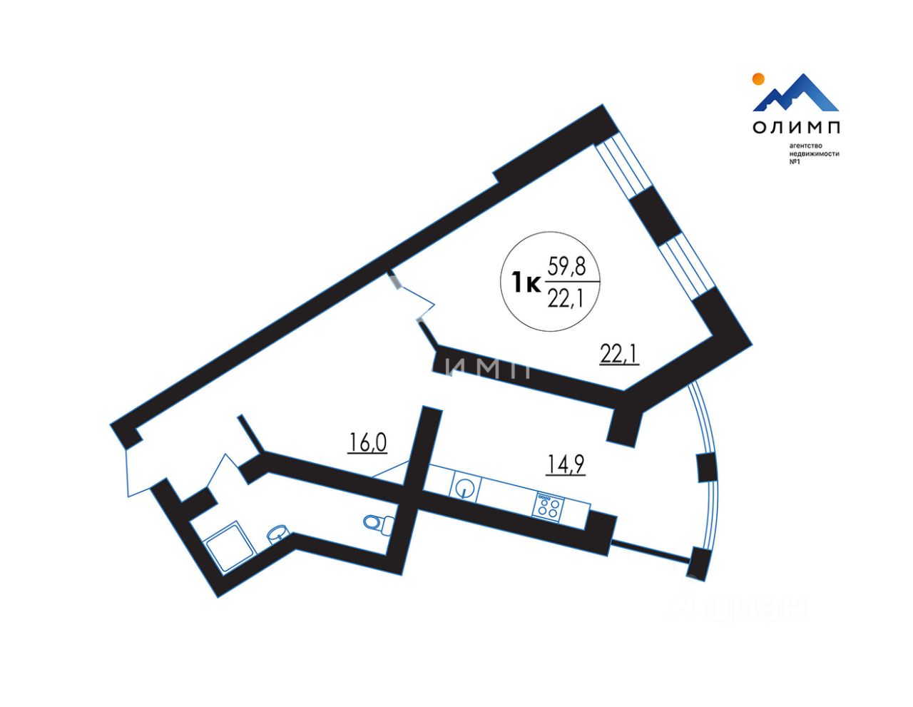 22,1 м²
