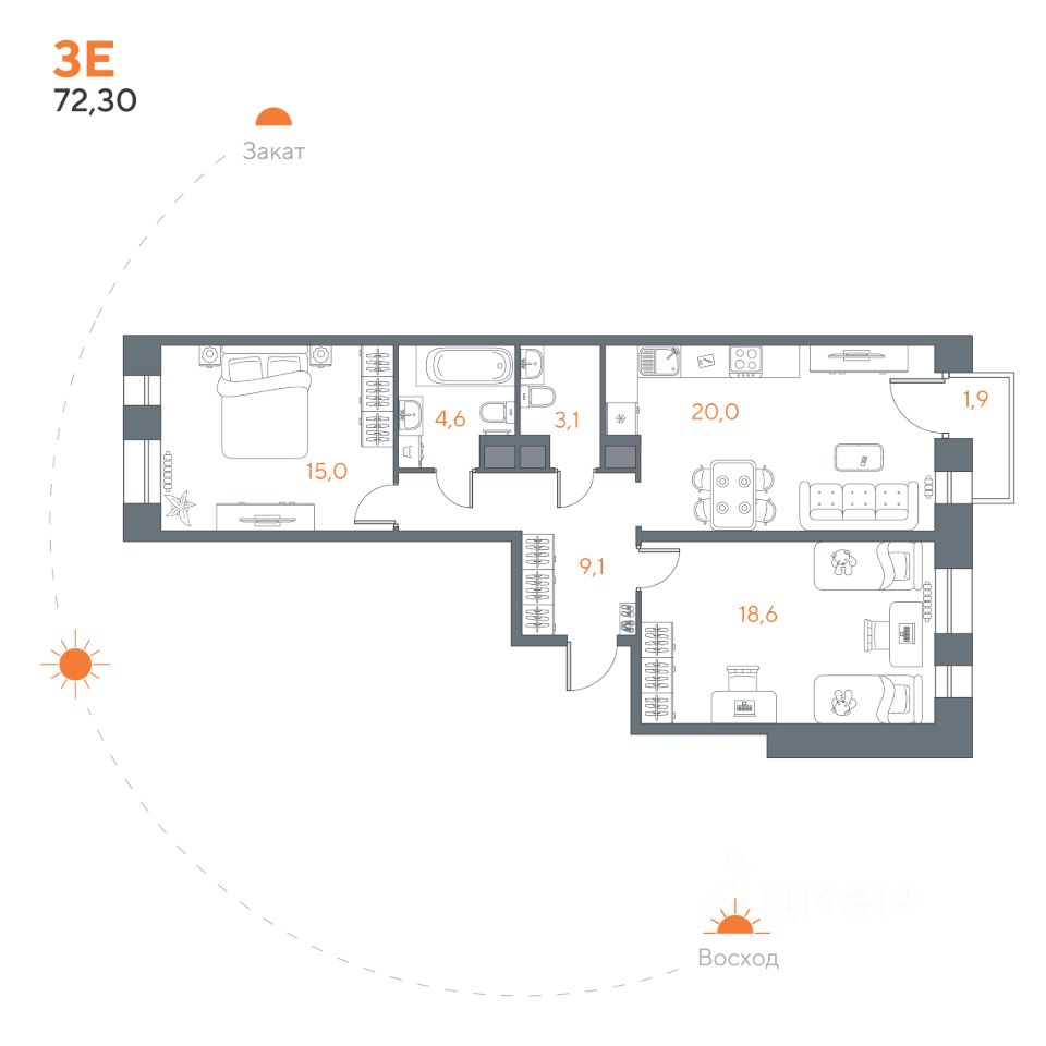 Общая площадь72,3 м²