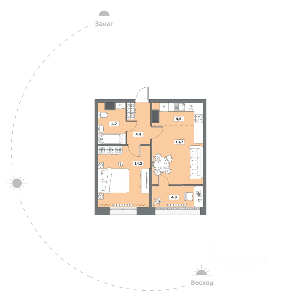 Жилая площадь14,2 м²