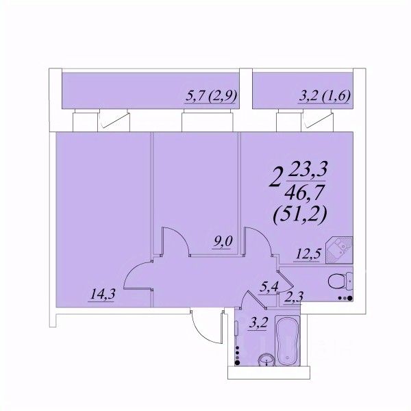 Общая площадь51,2 м²