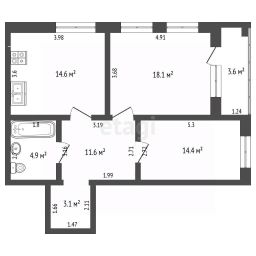 Высота потолков составляет 3 метра. Квартира предлагается в идеальном состоянии с дизайнерским ремонтом и полной меблировкой, которая остается новому владельцу. В отделке применены практичные материалы, установлены система теплого пола в прихожей, санузле и на балконе, а также собственный газовый котел. Балкон панорамно остеклен, что увеличивает полезное пространство и световой поток.