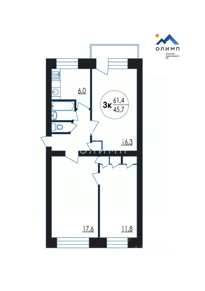 Просторная 3х комнатная квартира 61,4м в центре города