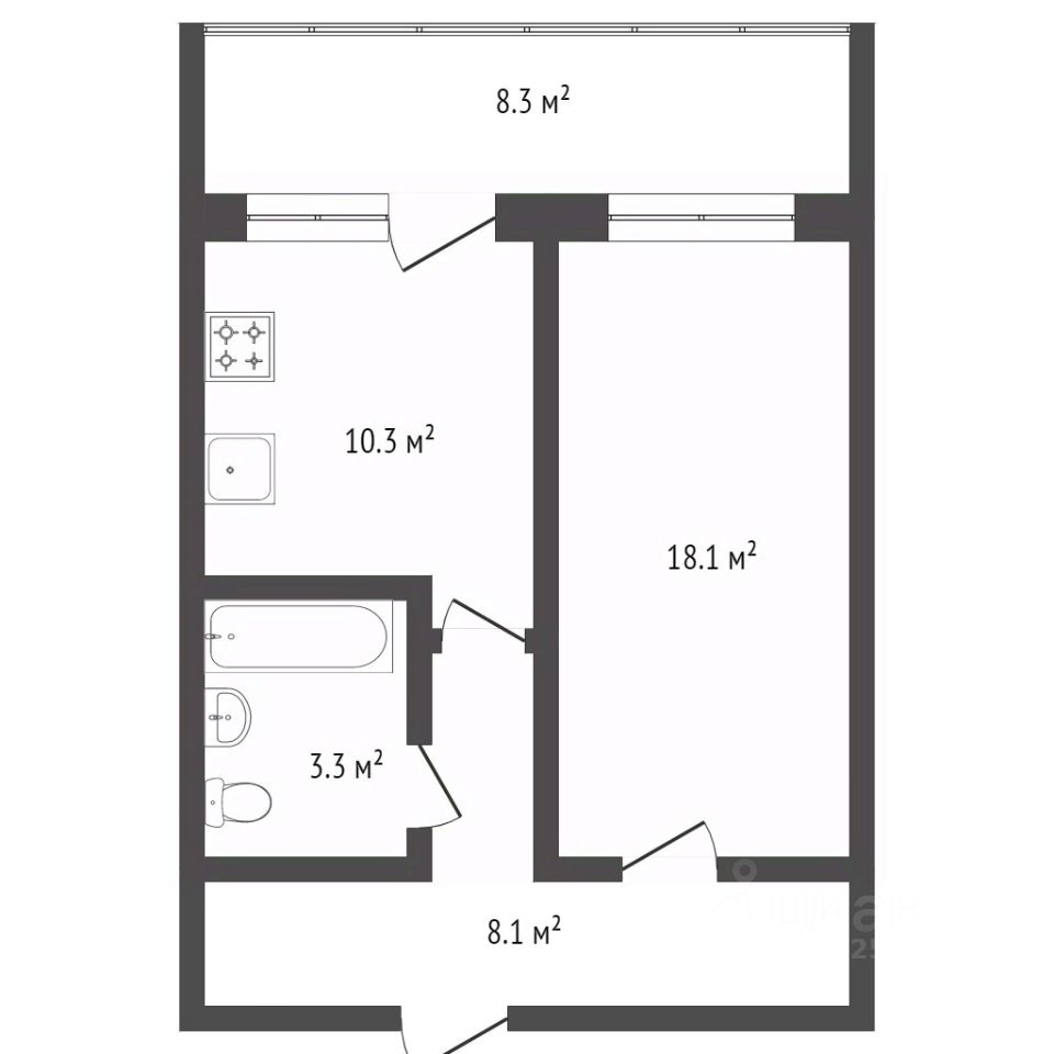 Это не стандартная "однушка". Здесь действительно просторно и уютно. Светлая комната, большая кухня, на которой легко разместится и обеденная зона, и зона готовки. Кухонный гарнитур остается новым — вы въезжаете и сразу пользуетесь.