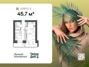 1-комнатная квартира площадью 46 м² в жилом комплексе "Моне" от застройщика ЧерриДом.