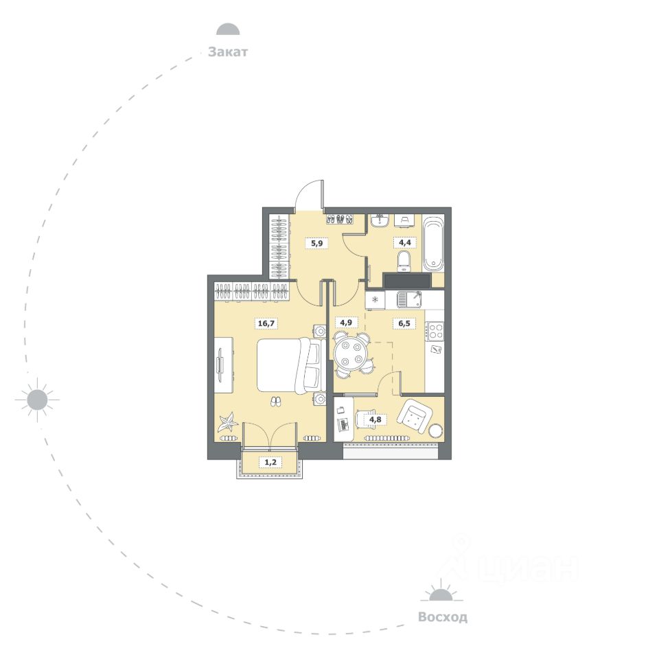 Жилая площадь16,7 м²
