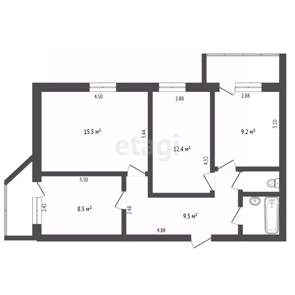 2 лоджии, 1 балкон