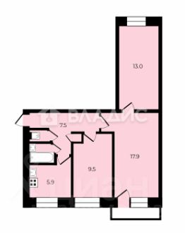 Комнаты: 17,9 + 13,0 + 9,5 м² (отличное зонирование для родителей и детей)