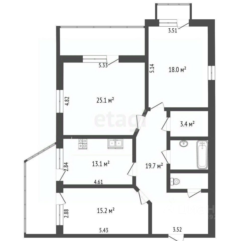 1 лоджия, 1 балкон