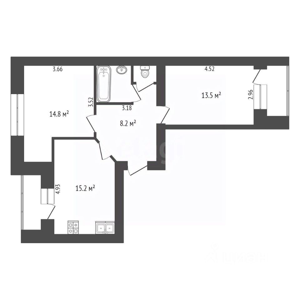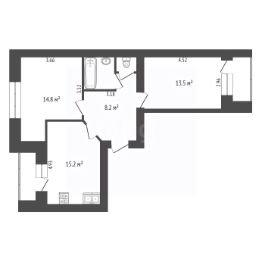 -две спальни 14,8 м2 и 13,2 м2;