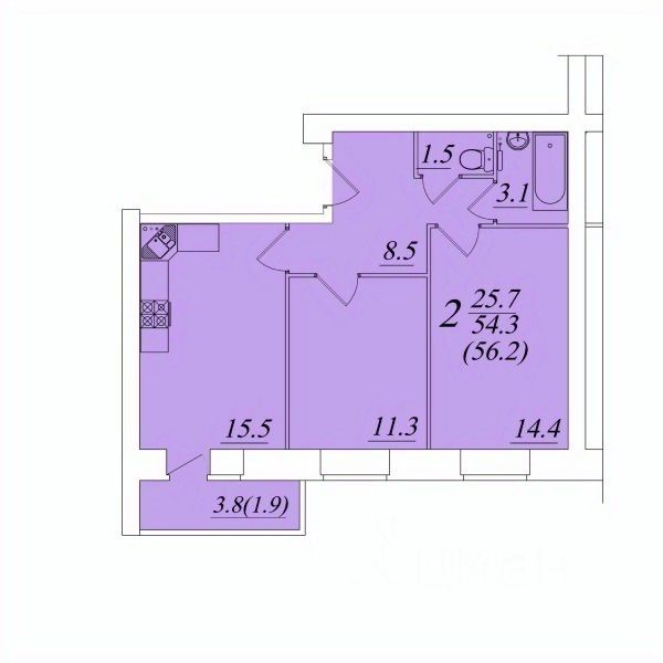 Общая площадь56,2 м²