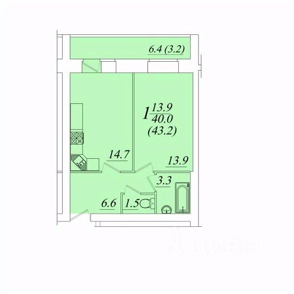 Продаётся 1-комнатная квартира в строящемся доме (Возрождения 57к2), срок сдачи: IV-кв. 2027, общей площадью 43.2 кв.м., на 4 этаже. Расположение, транспортная доступность