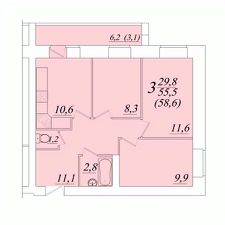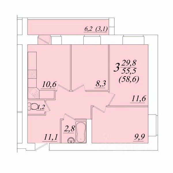 Продаётся 3-комнатная квартира в строящемся доме (Возрождения 57к3), срок сдачи: II-кв. 2028, общей площадью 58.6 кв.м., на 4 этаже. Расположение, транспортная доступность