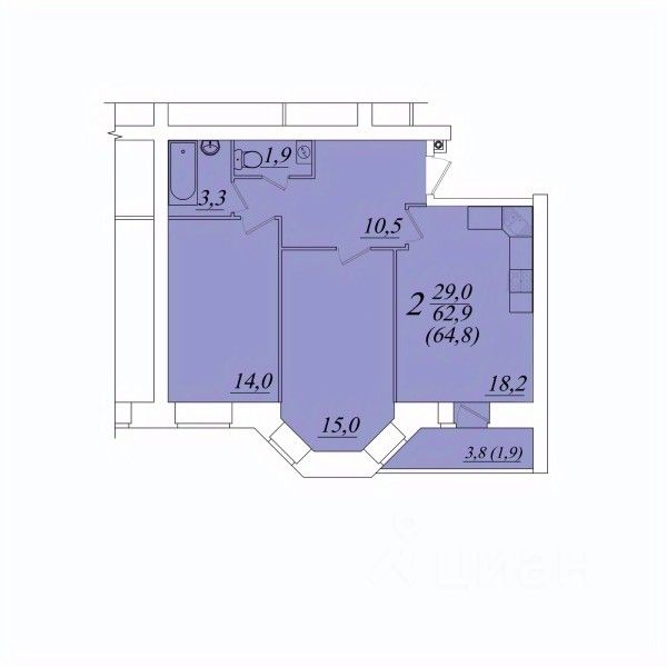 Продаётся 2-комнатная квартира в строящемся доме (Возрождения 57к3), срок сдачи: II-кв. 2028, общей площадью 64.8 кв.м., на 10 этаже. Расположение, транспортная доступность