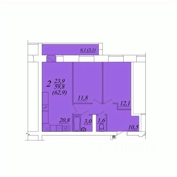 Продаётся 2-комнатная квартира в строящемся доме (Возрождения 57к3), срок сдачи: II-кв. 2028, общей площадью 62.9 кв.м., на 10 этаже. Расположение, транспортная доступность
