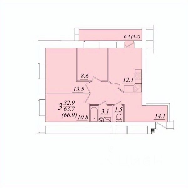 Продаётся 3-комнатная квартира в строящемся доме (Возрождения 57к3), срок сдачи: II-кв. 2028, общей площадью 66.9 кв.м., на 10 этаже. Расположение, транспортная доступность
