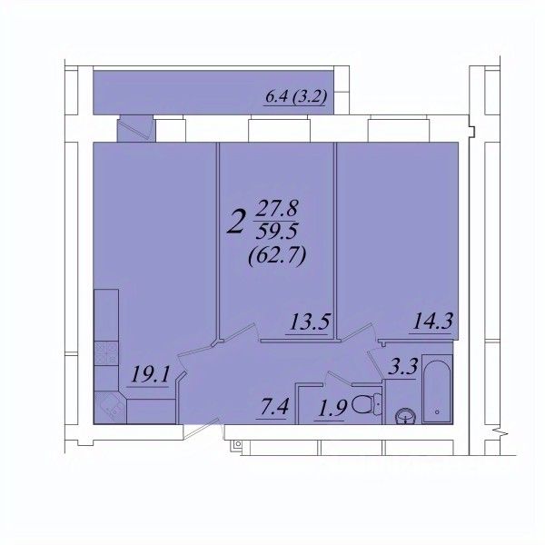 Продаётся 2-комнатная квартира в строящемся доме (Возрождения 57к3), срок сдачи: II-кв. 2028, общей площадью 62.7 кв.м., на 10 этаже. Расположение, транспортная доступность