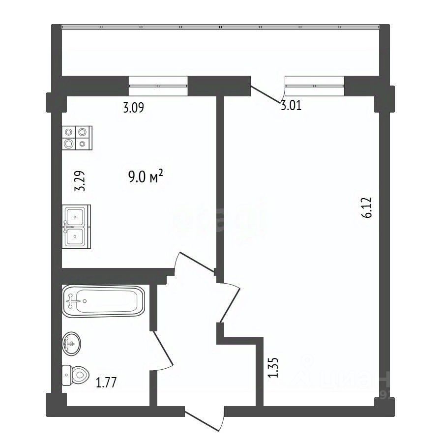 В квартире выполнен косметический ремонт с использованием качественных материалов. Планировка комнаты позволяет ее зонировать на спальную и гостиную зону. Просторная кухня площадью 9 кв.м., оборудована кухонным гарнитуром и всей необходимой техникой. С кухни есть выход на большую застекленную лоджию, где можно наслаждаться прекрасным панорамным видом. Санузел совмещенный облицован плиткой.