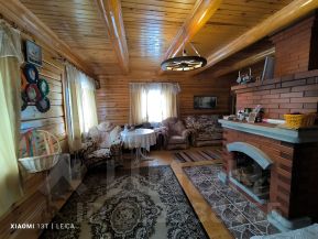 Бревенчатый дом на ленточном фундаменте, выстроен из зимнего леса. С внешней стороны обработан противопожарным составом, обшит сайдингом. Внутри дом полностью обработан бесцветной "Тикуриллой" для сохранения древесины. В деревню планируют провести газ.