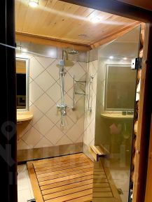 - В доме регулируемые, тёплые полы, санузел керамогранит. Летом прохладно, зимой тепло.