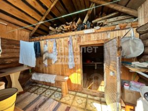 На участке 1-этажный бревенчатый дом площадью 38,2 м2, баня, дровенник. Оборудованный в доме туалет. Водовод проведен с реки.