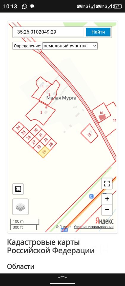 Земельный участок, расположенный по адресу: Вологодская область, р-н Сокольский, с/c Кадниковский, д. Малая Мурга, общей площадью 855 кв. м, с кадастровым номером 35:26:0102049:29. Торг, рассрочка,обмен возможен