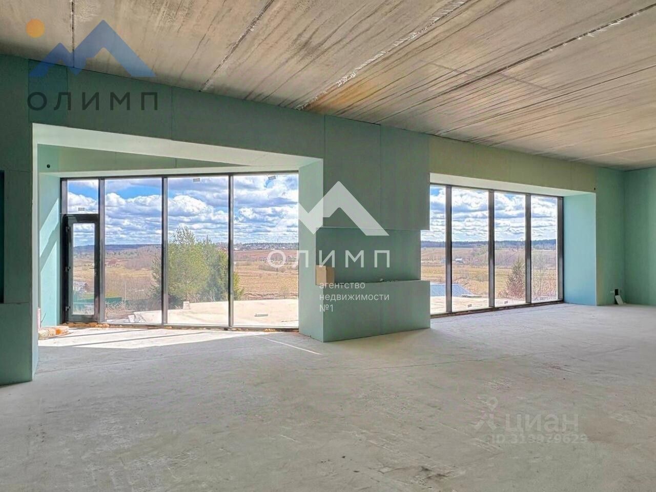 Зал с видовым панорамным остеклением h-2,9 м. (гостиная-кухня) 140 кВ.м., с подведенными коммуникациями.