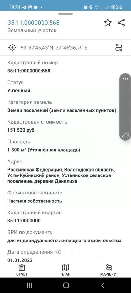 кадастровый номер 35:11:0000000:568
