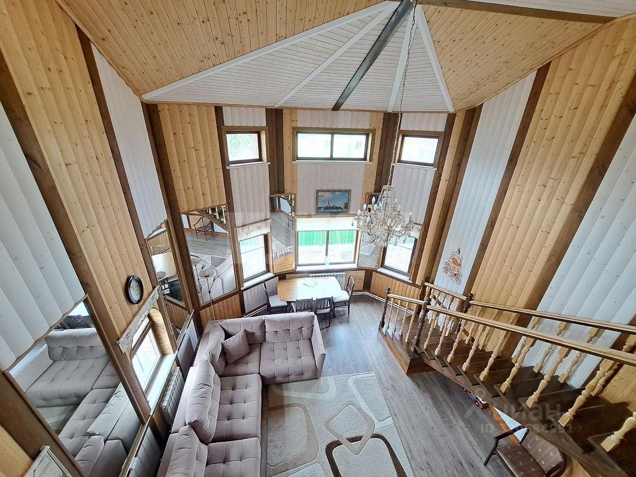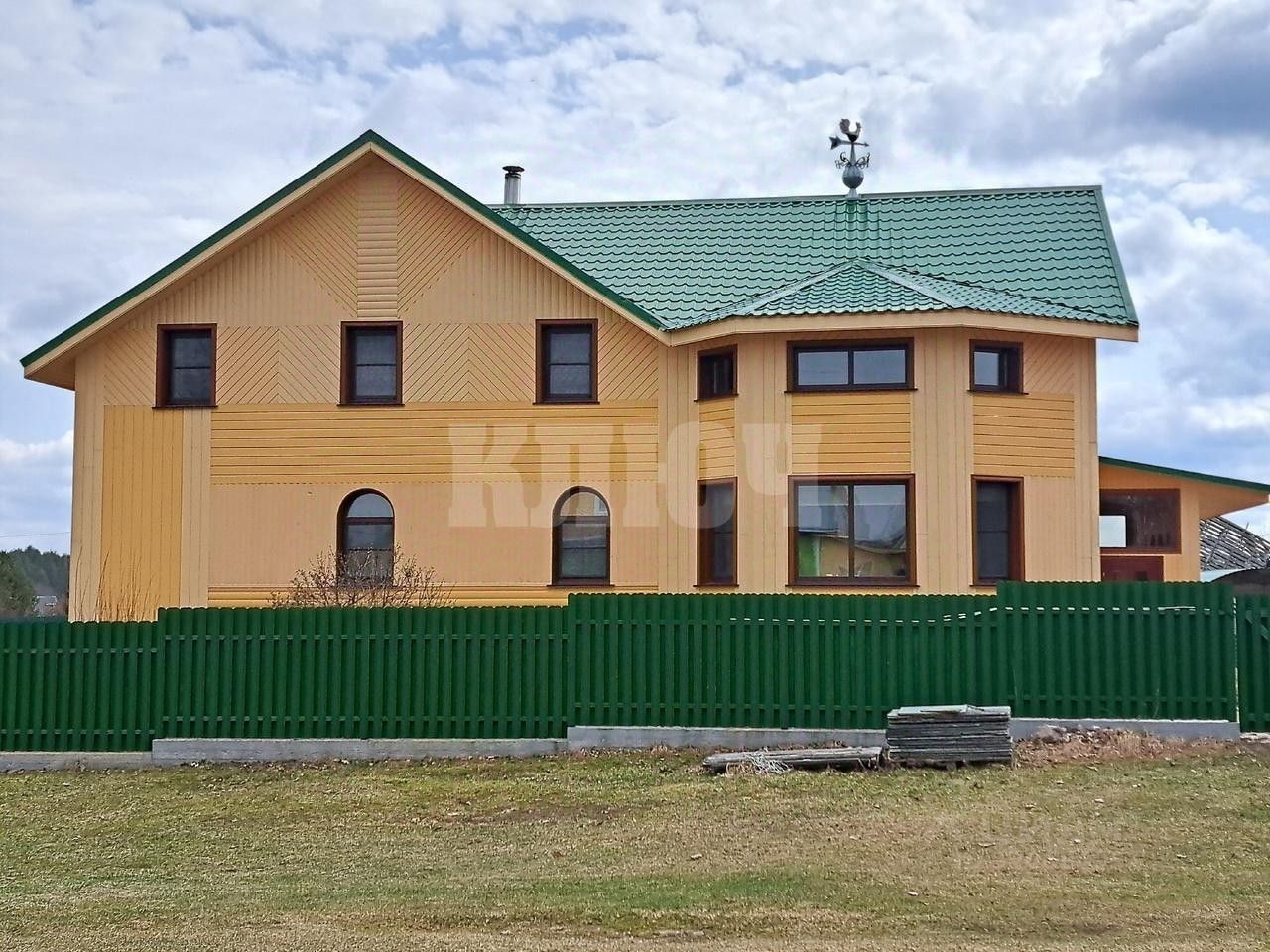 Представляю вашему вниманию великолепный двухэтажный дом площадью 230 м, расположенный на земельном участке в 20 соток (земли населённых пунктов, ЛПХ). Дом построен из бруса 150x150 мм, утеплён мин. ватой с обеих сторон и обшит имитацией бруса, а также покрыт пропиткой для защиты дерева.