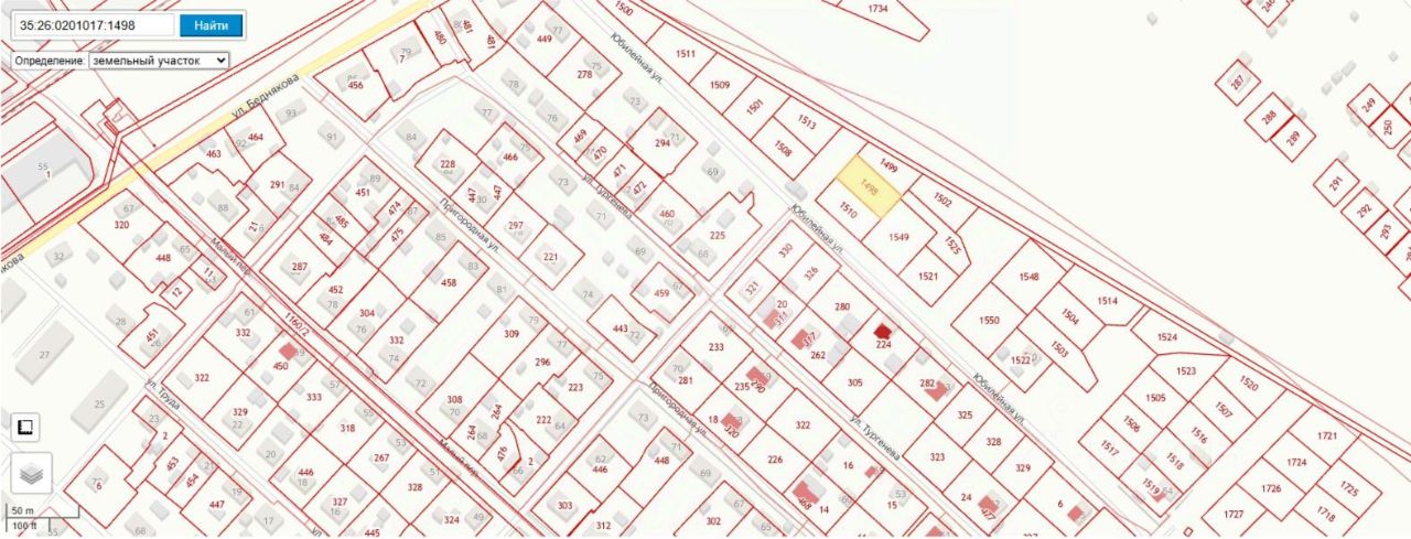 - Участок не разработан, замежёванный 35:26:0201017:1498