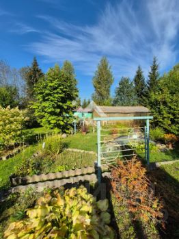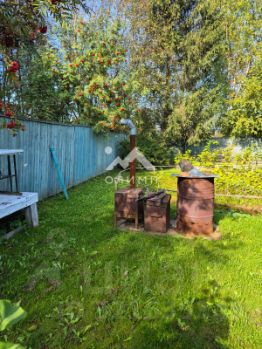 На территории есть небольшая банька, вместительный сарай с хозяйственным инвентарём (лопаты, грабли, ведра, лейки, садовые тачки), удобный отдельно стоящий туалет, деревянная веранда со столом и скамейками, обвитая плющом. Колодец, 6 колец. Металлическая теплица с поликарбонатом.